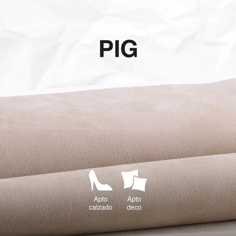 El material Pig es símil chancho el cual sirve para forrería de calzado. El cuero sintético o cuerina, tiene una textura similar a la que se obtiene de una vaca u otro animal. Una de sus principales ventajas, es que requiere poco mantenimiento en comparación con el cuero y que no se agrieta, ni se desvanece fácilmente. Sirve para confección de calzado, marroquinería y decoración.